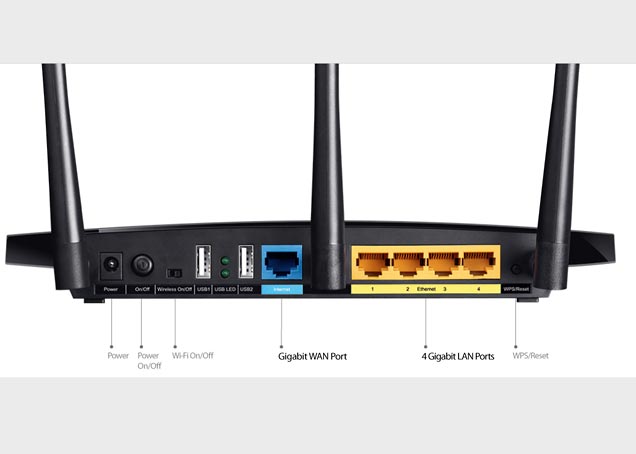 Hub/WAN 10/100/1000 * 4 LAN * 1 WAN * 2 USB 2.0